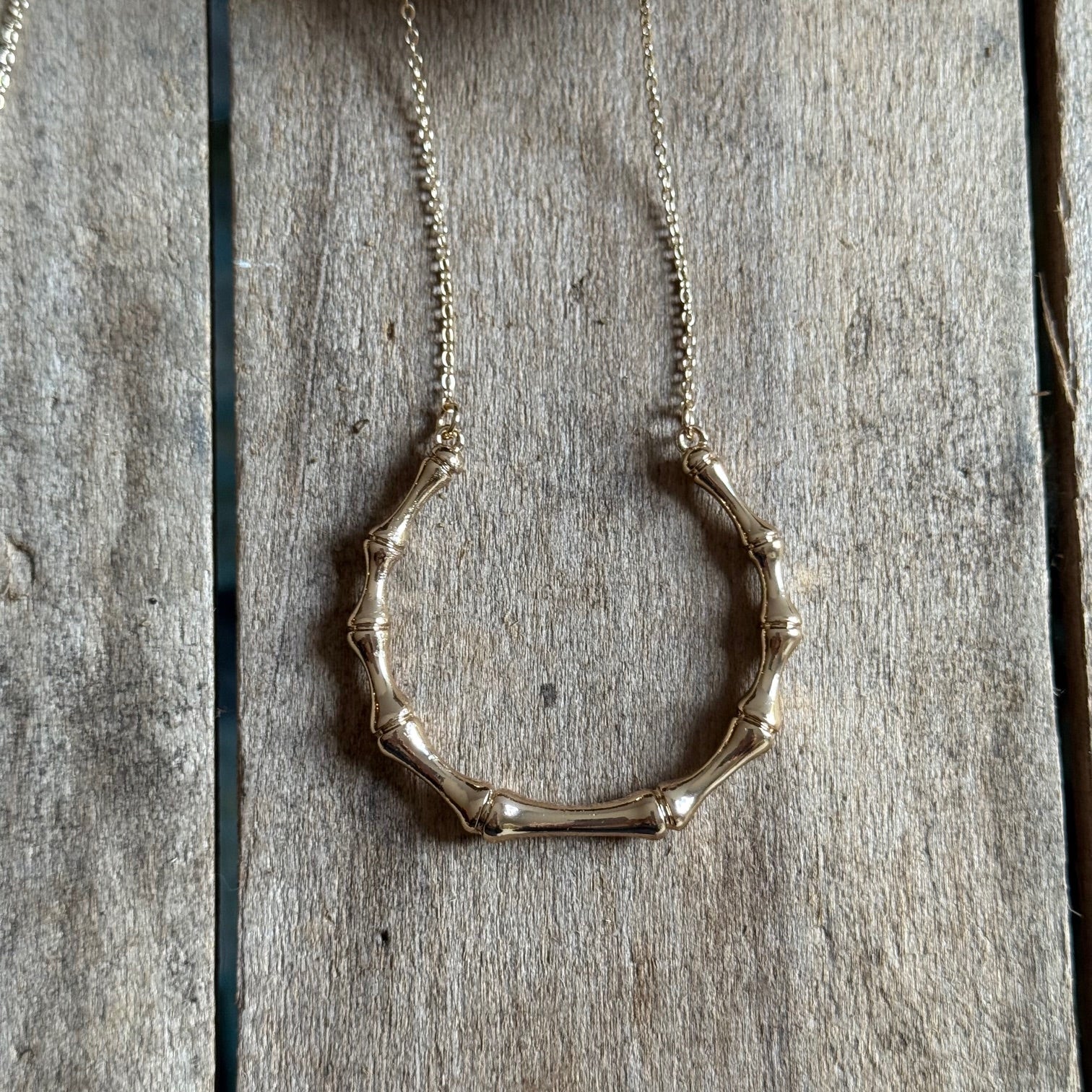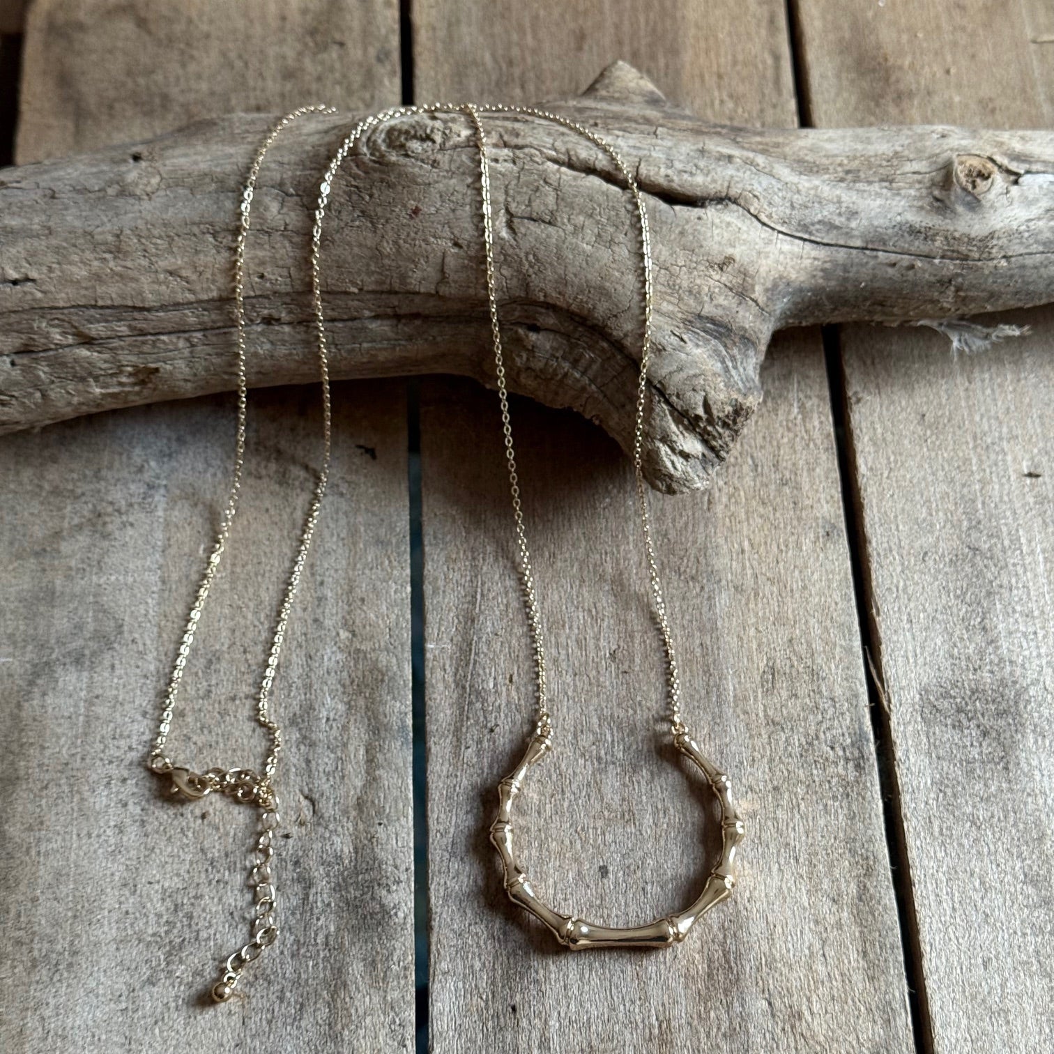 Want to express your equestrian style but in a subtle unique way? Our Bamboo Horse Shoe Necklace does just that! With the look of bamboo, the 18k Gold plated horse shoe hangs from a long chain making it perfect for layering!