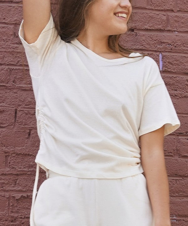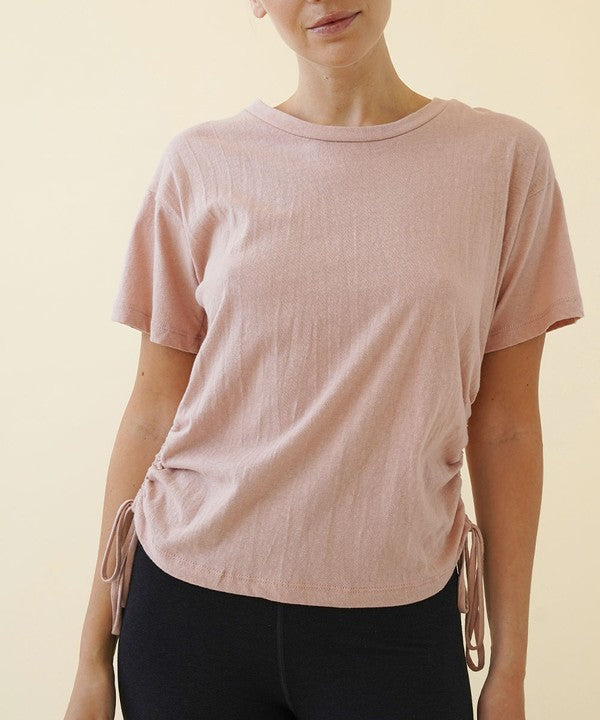 Why not help the planet and wear cute clothes at the same time? This top features recycled cotton, a crew neckline, and the flattering fit of adjustable sides! So comfy. So eco-friendly.