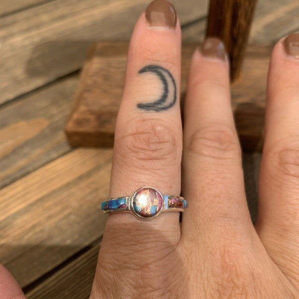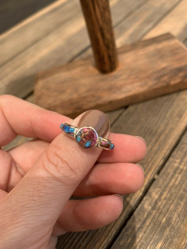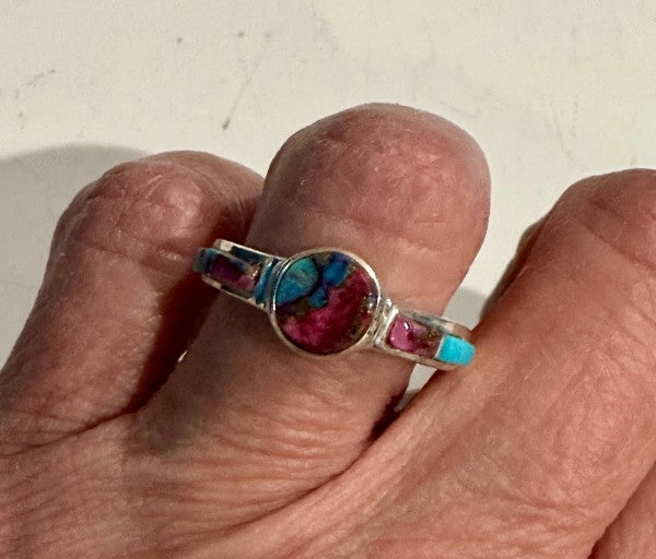Sterling Silver Pink Dream Mojave Ring. Multi Stones create this cutie. Due to the nature of natural stones color combinations of each ring will have slight variations. Signed by Artist and stamped .925