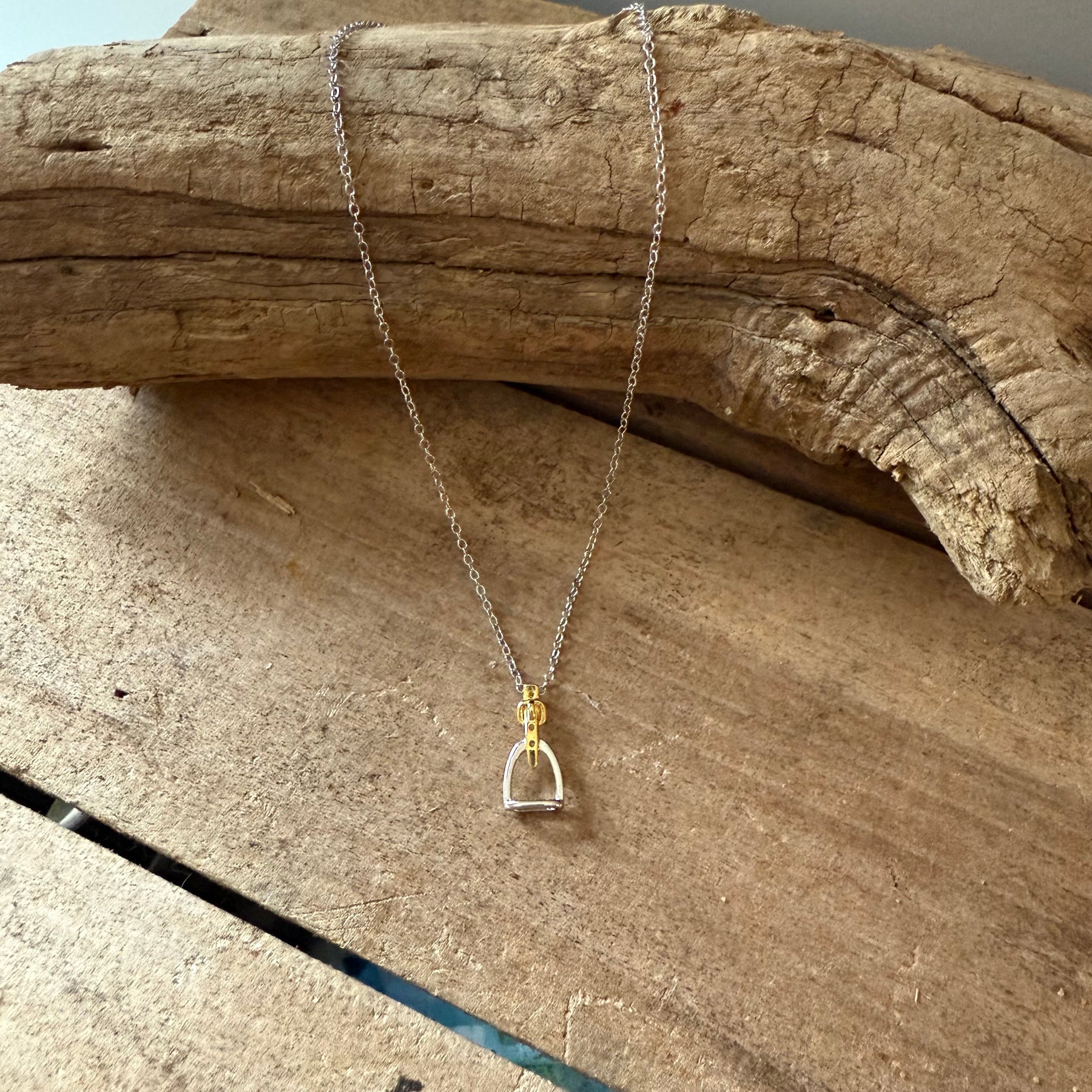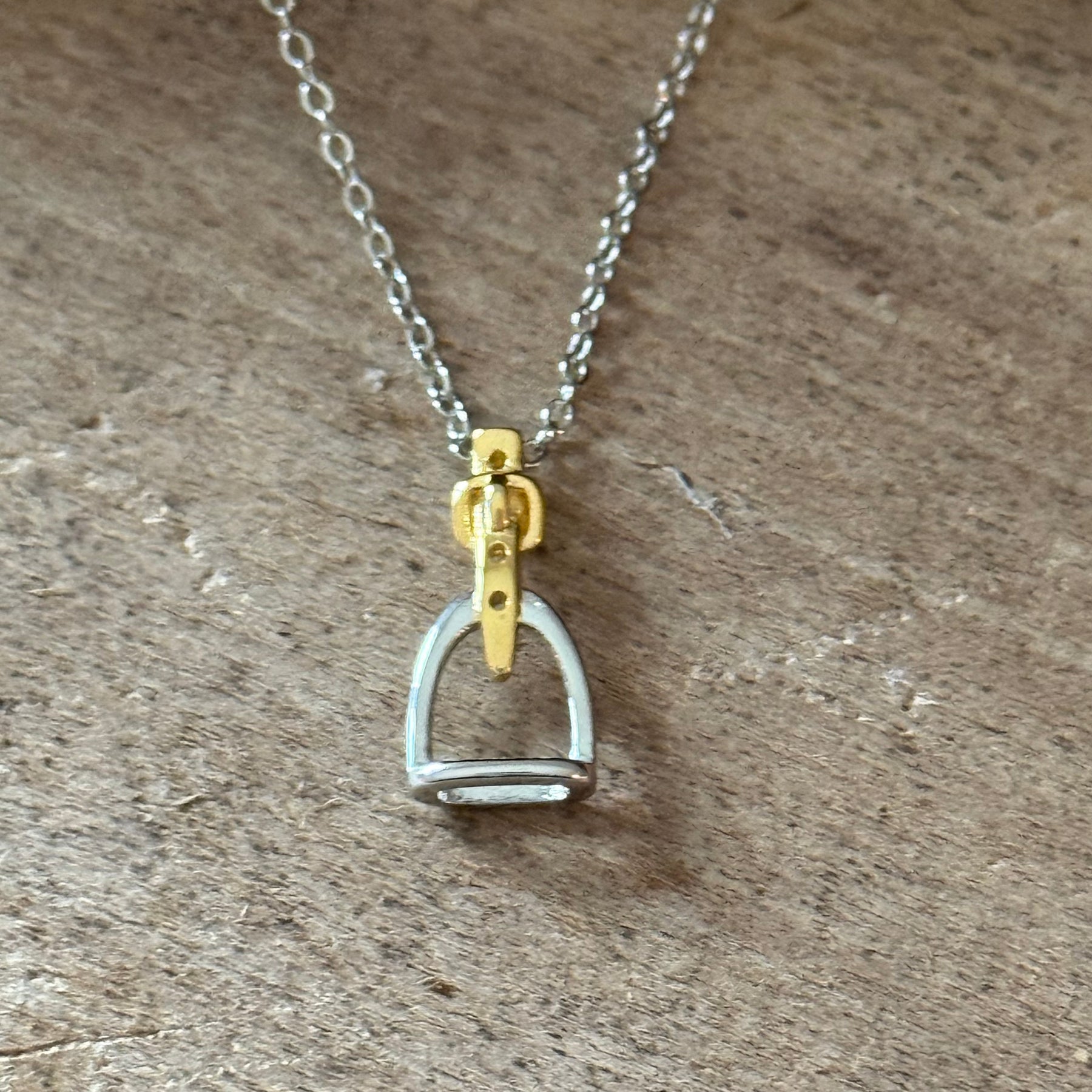 Stirrup some fun in our English Stirrup necklace.  This dainty stirrup charm hangs from a stainless steel 18" chain.