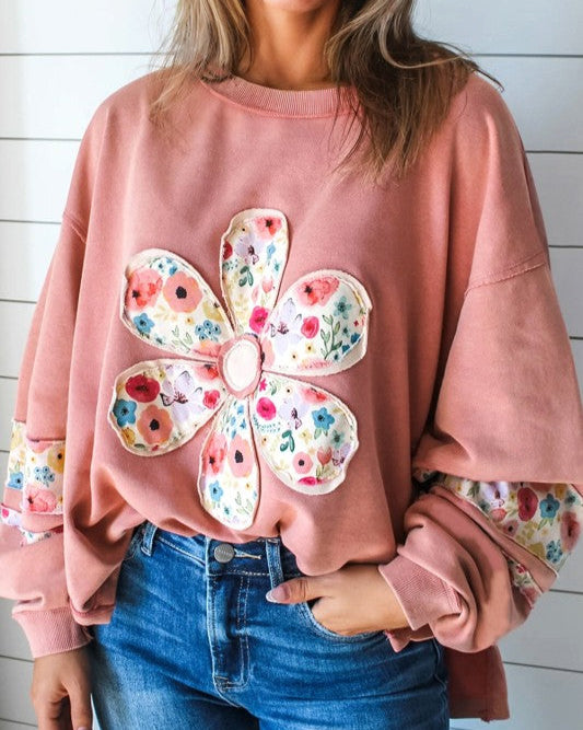Embrace cozy style with this sweatshirt. The fun daisy pattern brings a touch of feminine charm, while the relaxed baggy fit flatters every body shape. Its drop shoulder design adds a cool, slouchy vibe—perfect for pairing with your favorite jeans or sweatpants. Stay effortlessly comfy and playful all day long!
